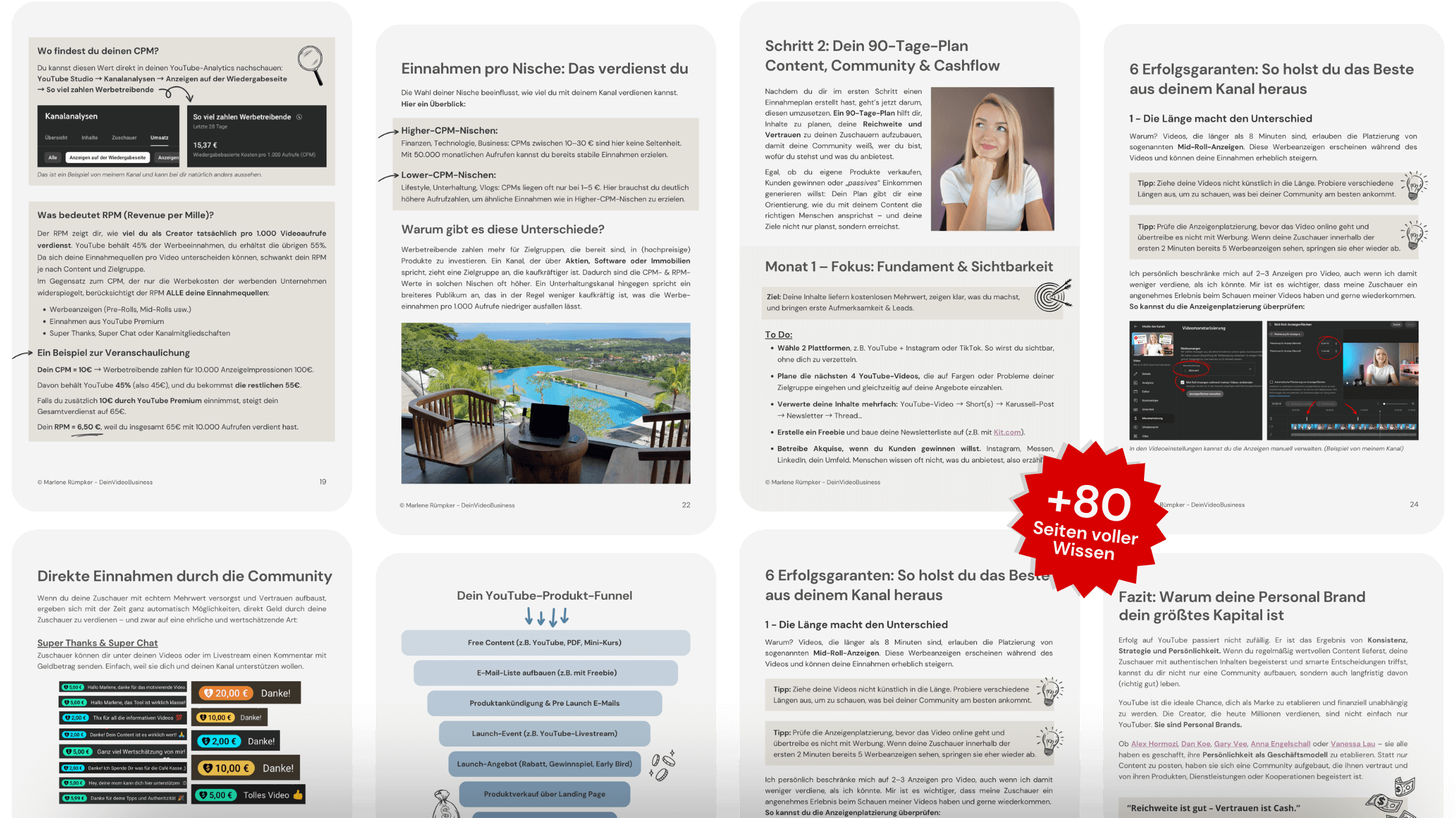 Du willst mit deinem YouTube-Kanal Reichweite aufbauen und echte Einnahmen erzielen? Guter Plan! Dieses E-Book ist dein praktischer Begleiter, wenn du deine Leidenschaft in dein Business verwandeln willst, auch ohne großes Startkapital oder riesige Followerzahlen!
